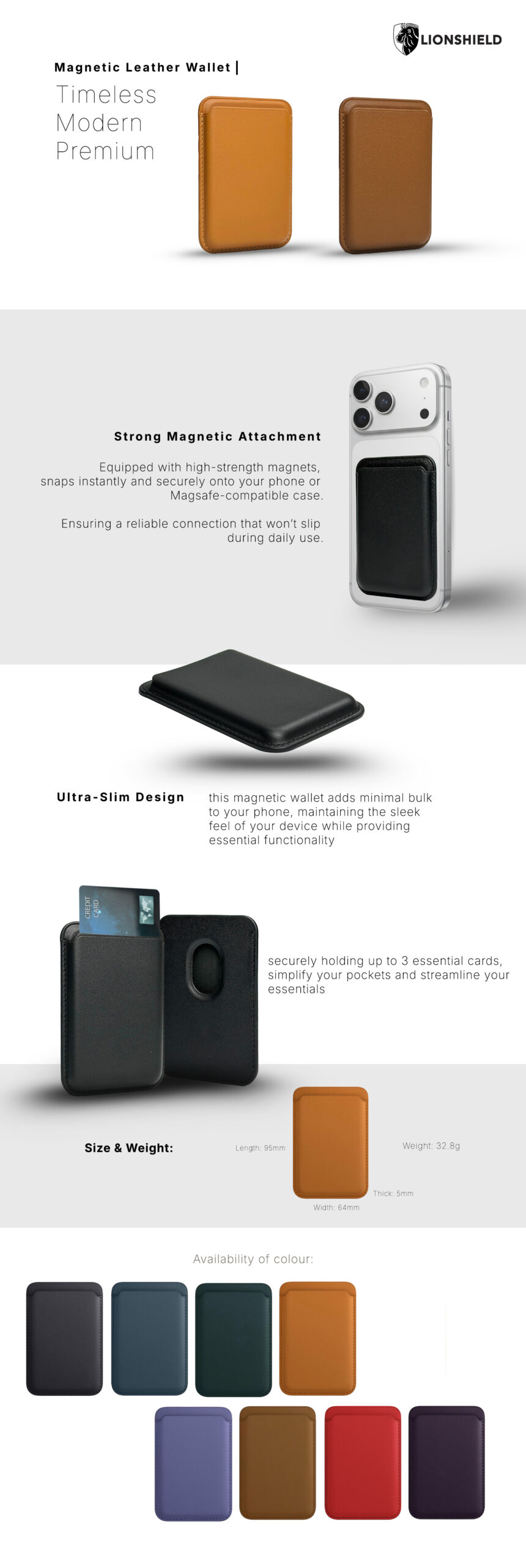 LionShield Premium Leather Magnetic Wallet Card Holder, Compatible with iPhone 17/16/15/14/13/12 Pro Max Plus